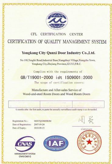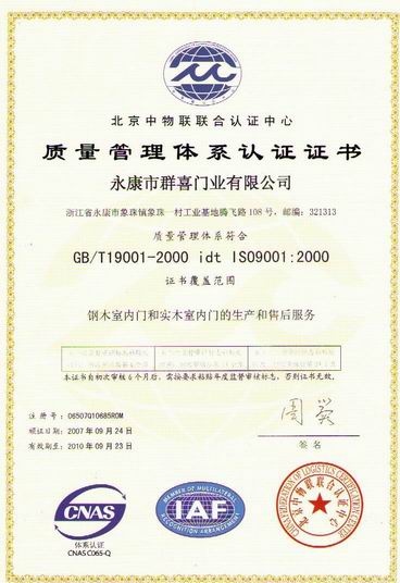 群喜公司通过ISO9001:2000质量管理体系认证,经专家认证,产品合格!