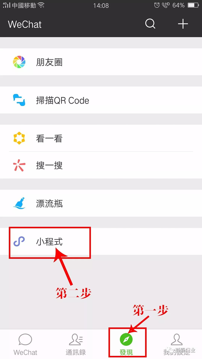 2、点击发现页最下方“小程序”按钮