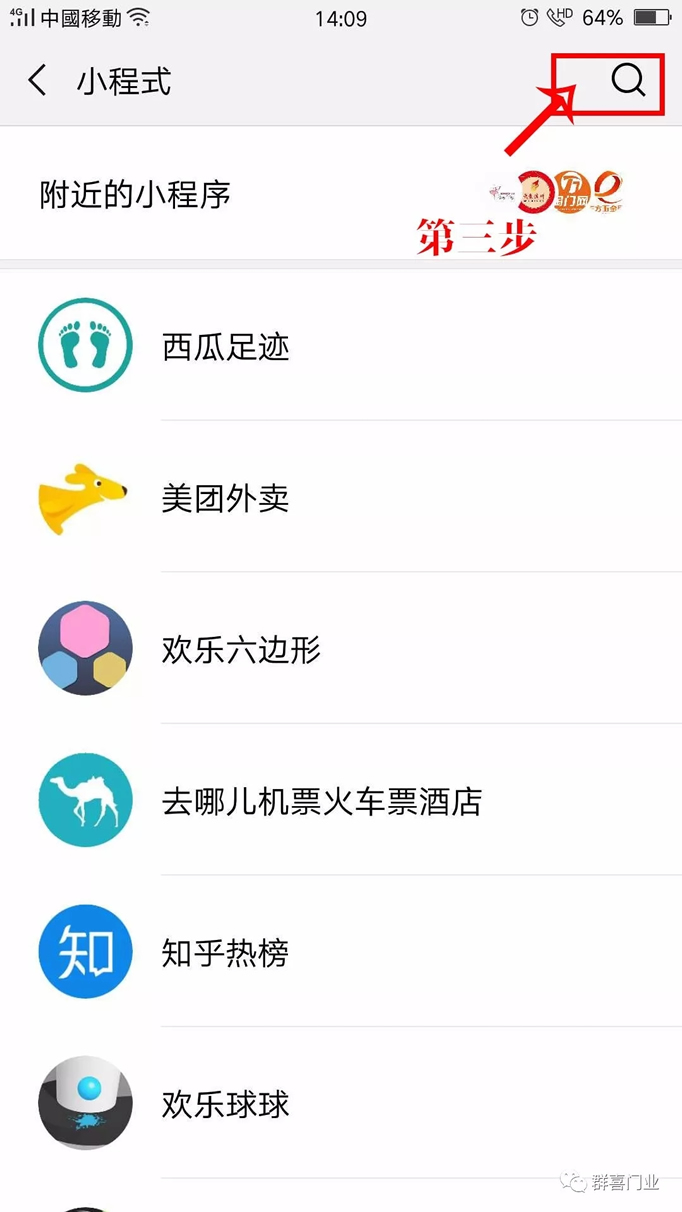 5、如需再次使用,点击小程序即可看到群喜木门小程序的存在,